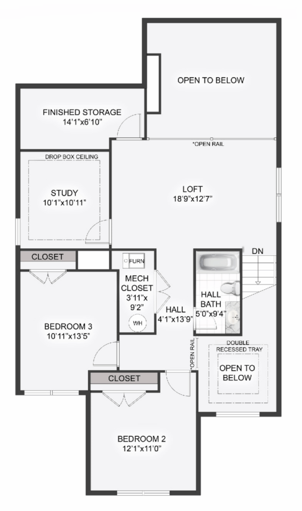 Upstairs, enjoy two generously sized guest bedrooms, a sunlit study, a versatile loft, and finished storage space. Step outside to relax on your private rear covered patio or enjoy the charm of your covered front porch.