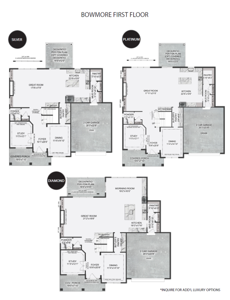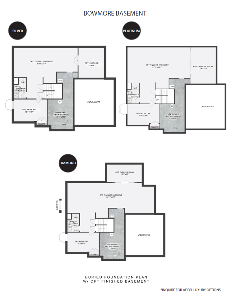 Discover luxury for every lifestyle with our popular Bowmore floor plan. The kitchen flows into the breakfast area and great room, making this home perfect for entertaining. Enjoy dinners located in the formal dining room, easily accessible from the kitchen or butler’s pantry. Make working from home a dream in your new spacious study located off of the open front foyer. Upstairs you will find the stunning owner’s suite, with a sitting room, luxurious on-suite bath, and dual walk-in closets. Three additional guest bedrooms, two full bathrooms, and a spacious laundry room complete the second floor. Finish the basement and create a one-of-a-kind custom bar, exercise room, or recreation space to enjoy for years to come!