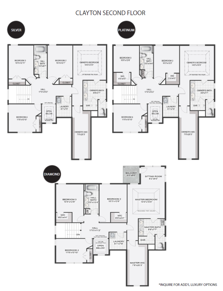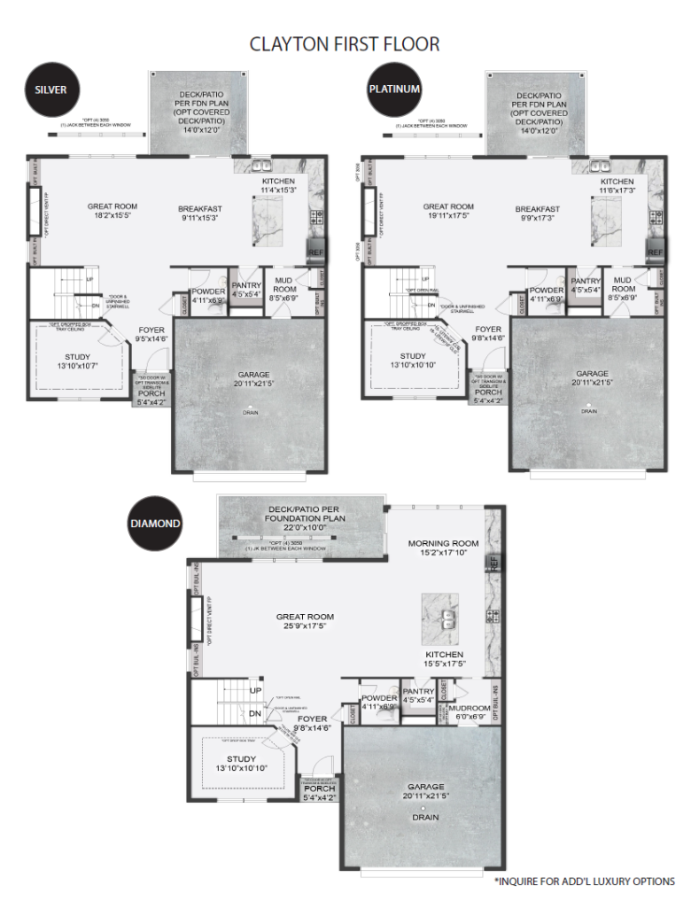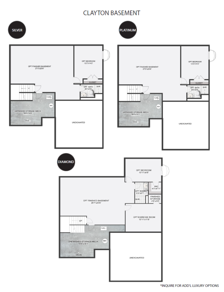 As you enter the Clayton home, you will find a light-filled study perfectly located off the foyer. This open floor plan is full of luxury elements. Enjoy entertaining in the great room that spills into the bright and airy breakfast room and kitchen featuring a gourmet island. Continue upstairs to the owner’s suite equipped with a spacious walk-in closet and spa-like bath, 3 additional guest bedrooms, and a full guest bathroom. Customize the basement with options such as additional living space, guest bedroom, full or partial bathroom, and extra storage space.
