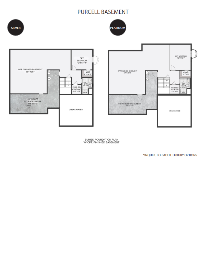 The convenience of main-level living at its finest, The Purcell offers luxury living amenities throughout. Relax and enjoy life on the serene covered front porch. As you enter the foyer of the home, you will be greeted with a study beaming with natural light. The spacious great room flows into a high-end bright and airy kitchen.  Laundry is easy in the first-floor laundry room. Tucked away you will find a private owner’s suite, spa-like private bath, and large walk-in closet. One additional guest bedroom and full bathroom complete the main level. Choose a finished basement with options such as additional living space, guest bedroom, full or partial bathroom and place for extra storage.